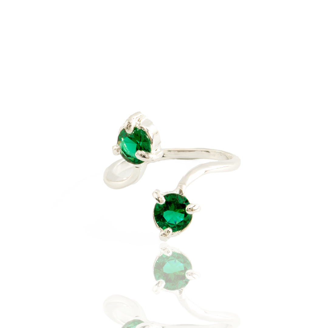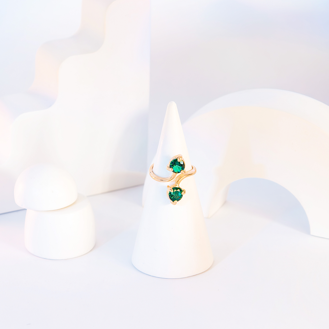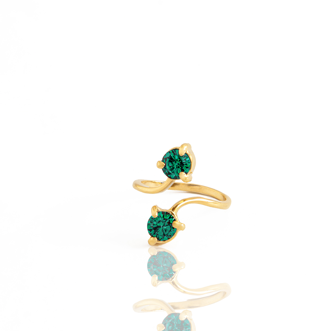 Anel 2 Cristais Artificiais Quatzo Verde Banhado