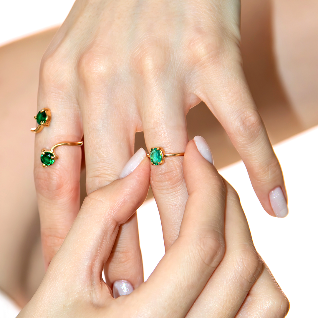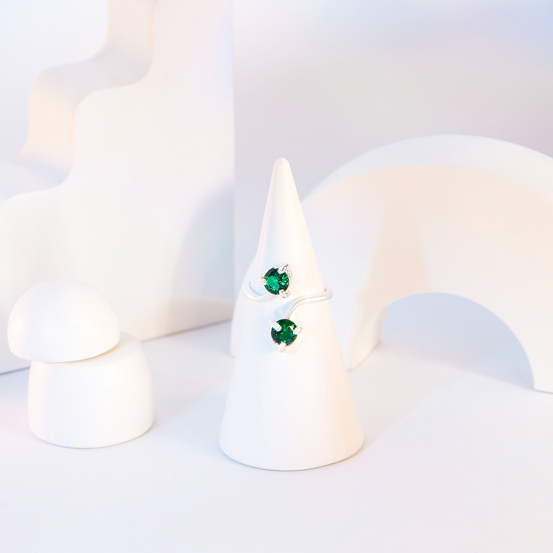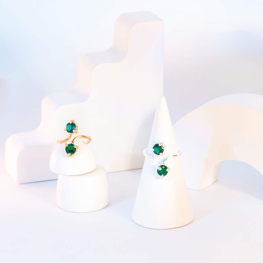 Anel 2 Cristais Artificiais Quatzo Verde Banhado