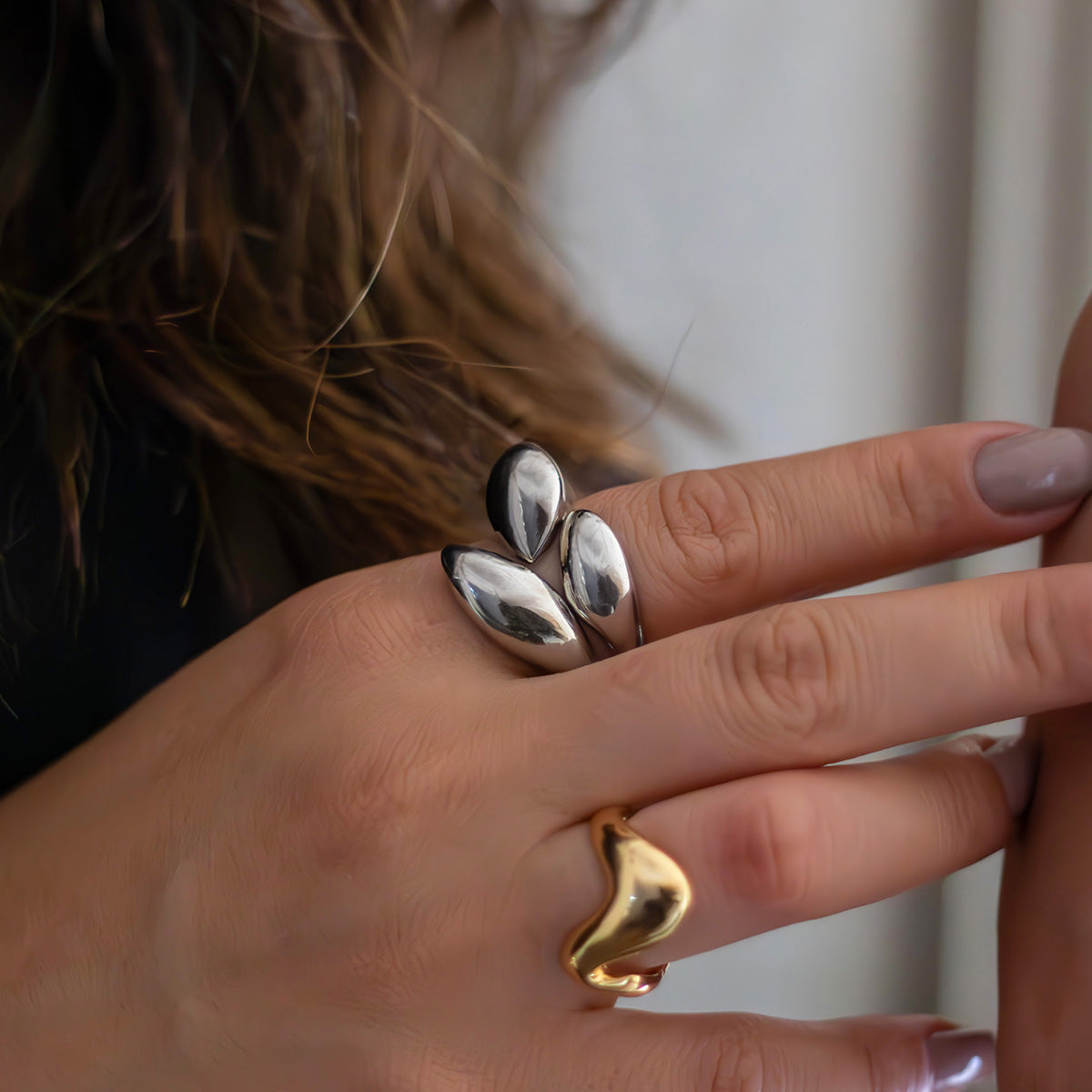 Criado para proporcionar um encaixe confortável nos dedos, o Anel 3 Navetes Lisos Acetinados é leve e anatômico, garantindo o uso prolongado sem incômodos.