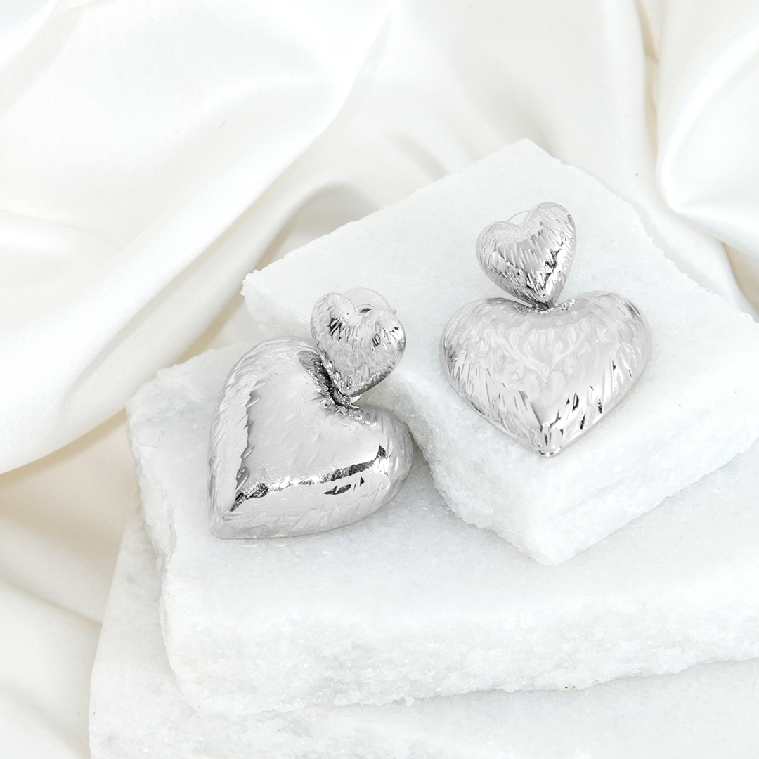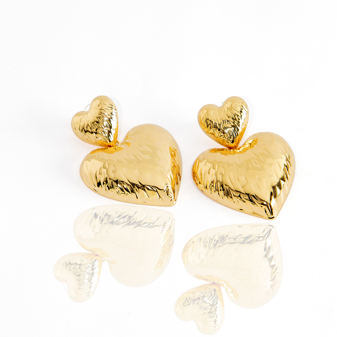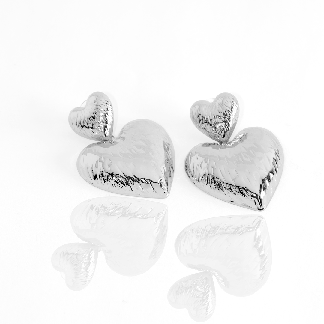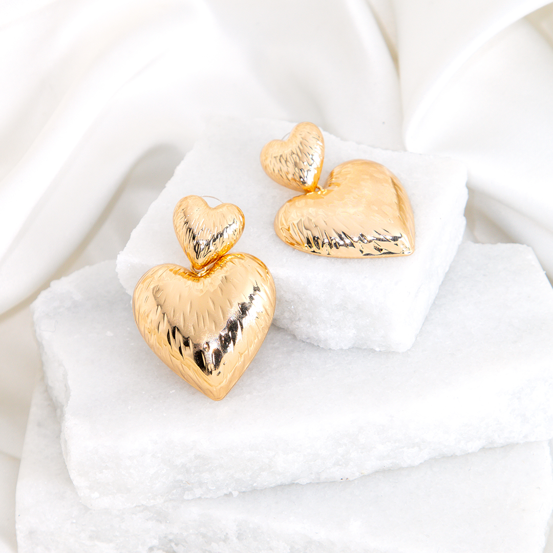 O Brinco Coração Duplo Texturizado é a escolha perfeita para quem ama ousar com romantismo e personalidade. Com design impactante de dois corações sobrepostos e acabamento texturizado que reflete a luz de forma única, ele traz presença e brilho na medida certa.