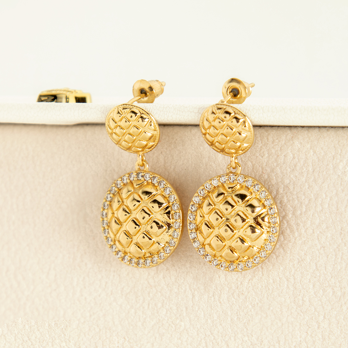 O Brinco Duplo Redondo com Textura Geométrica é a escolha ideal para quem busca um acessório sofisticado com personalidade. O design articulado em dois discos com relevo geométrico cria um efeito visual moderno e elegante, perfeito para destacar o rosto com brilho e presença.