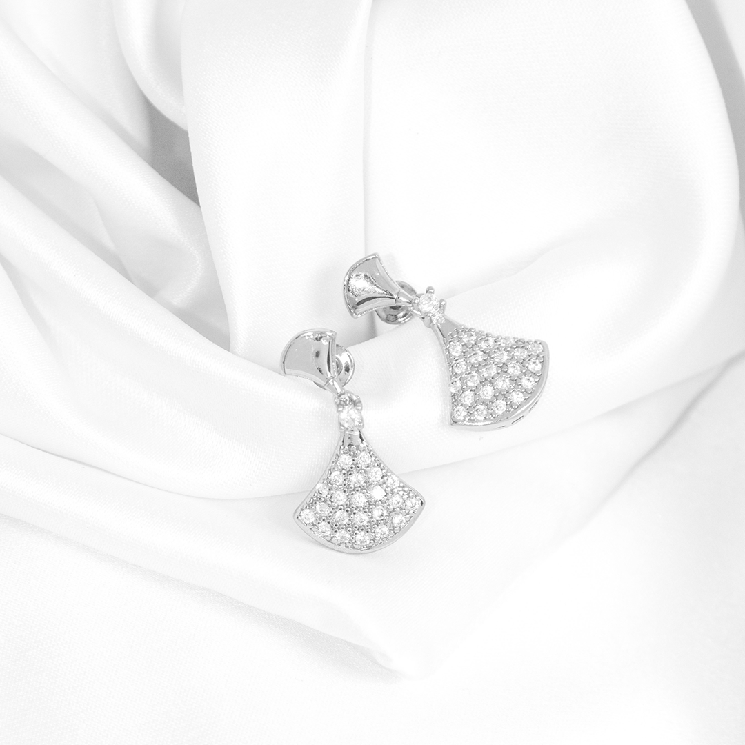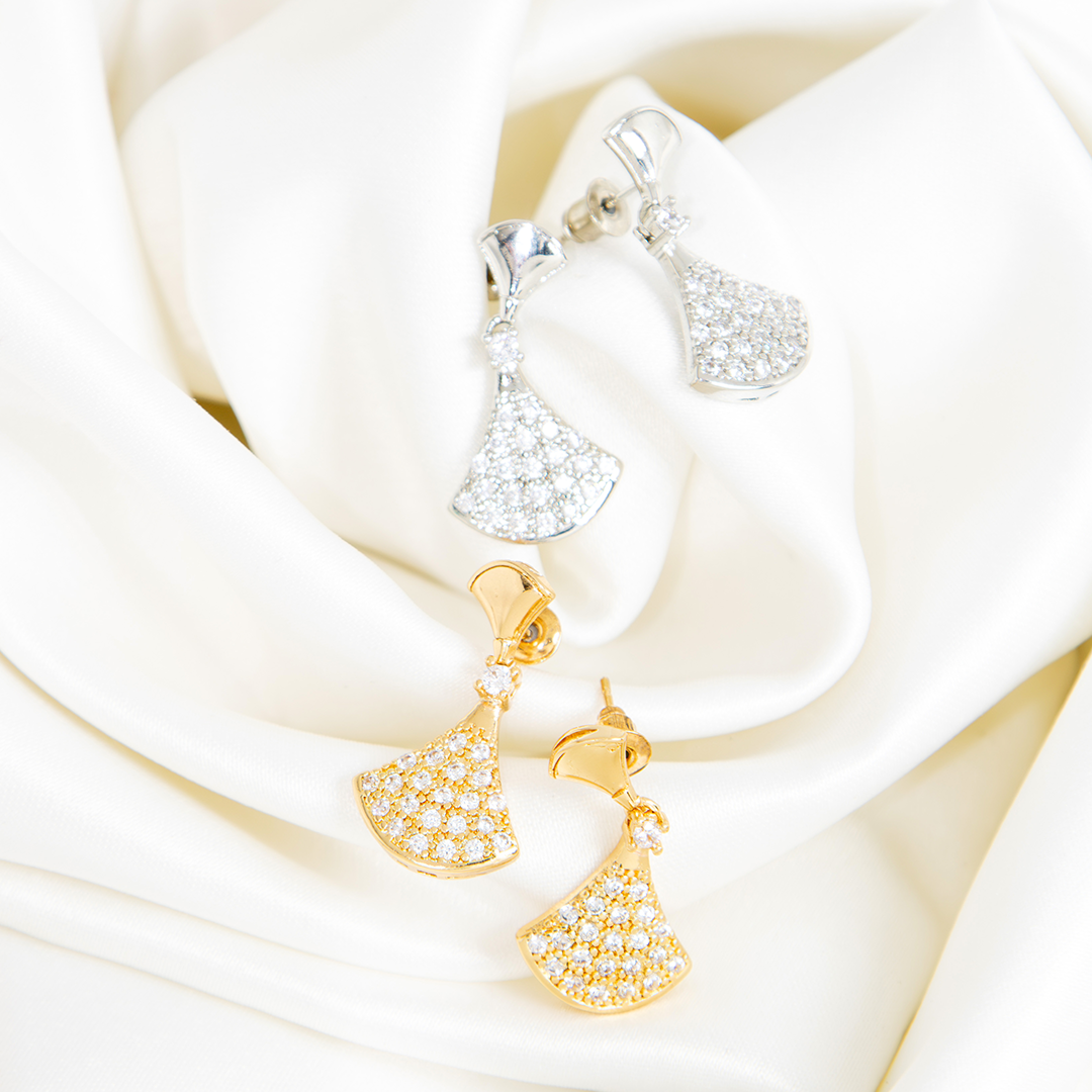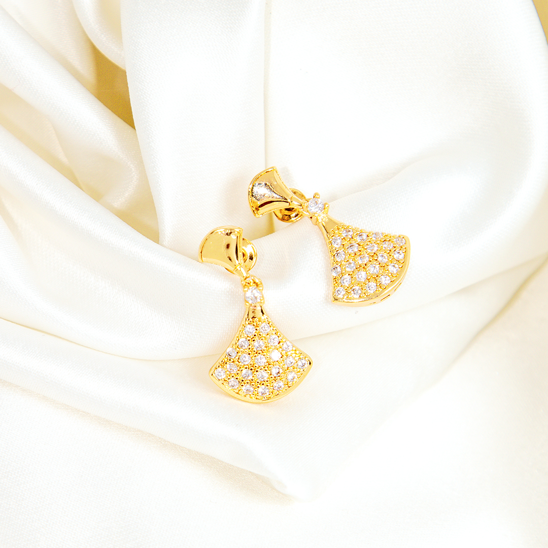 Brinco Leque Luxo Banhada Com Microzircônias Cravejadas