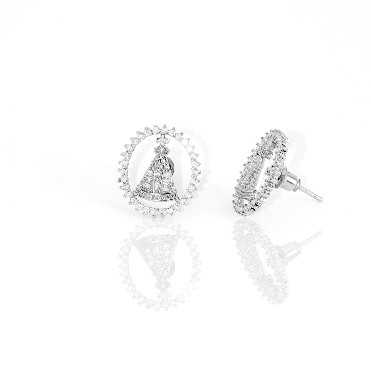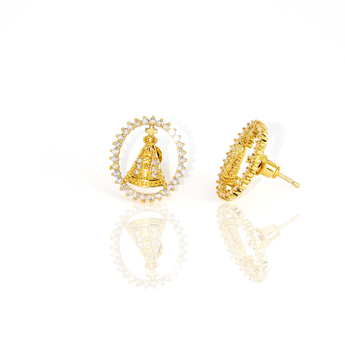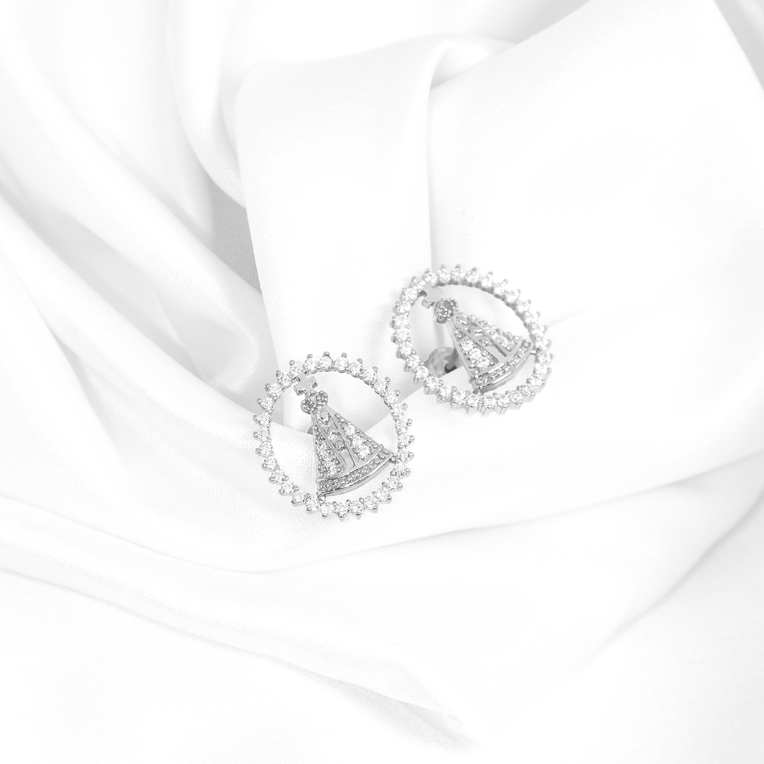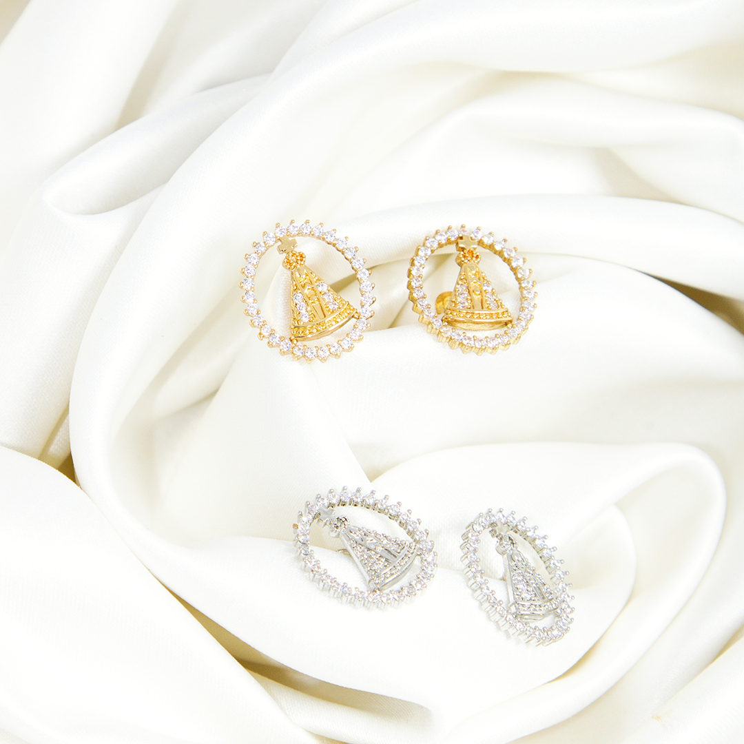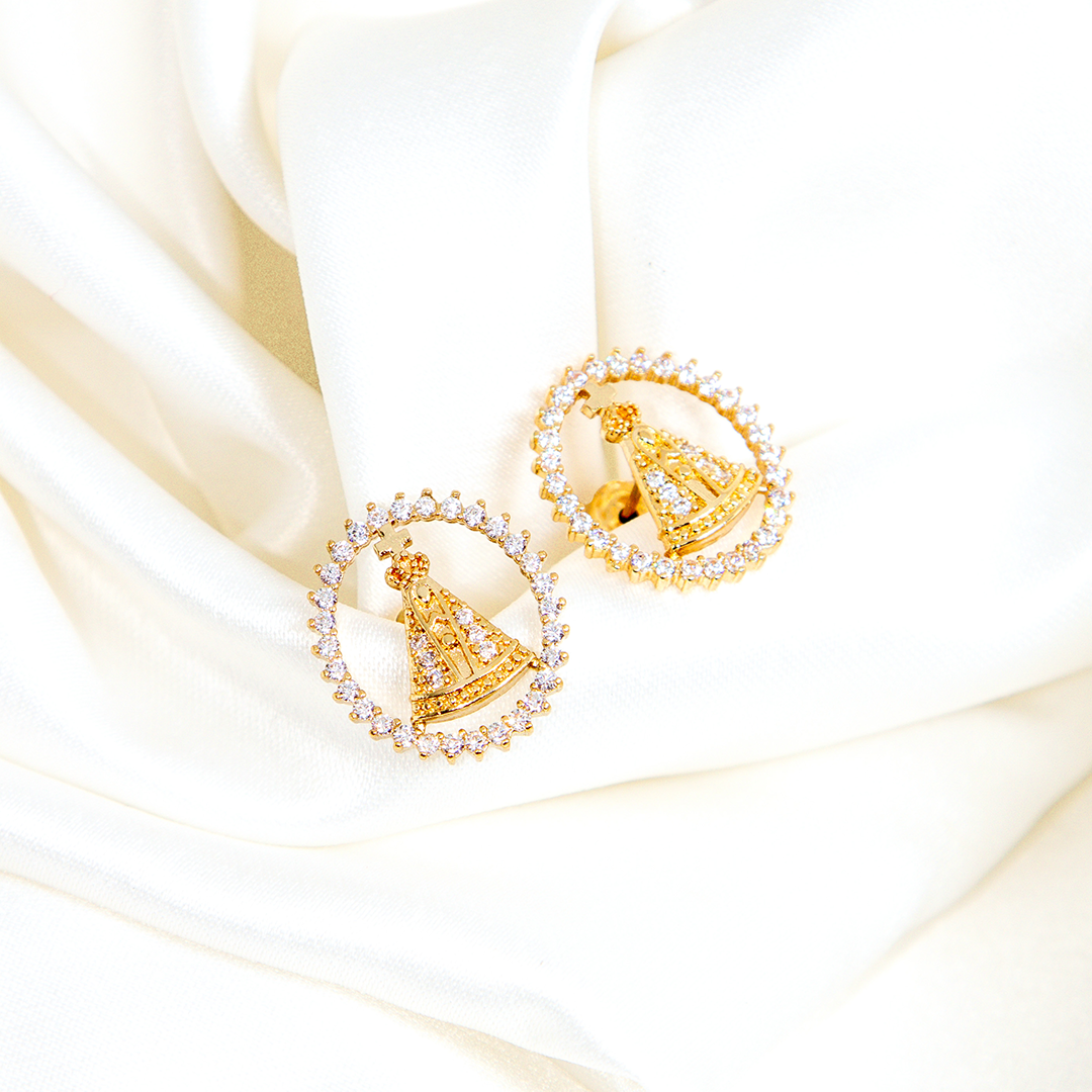 Brinco Oval Nossa Senhora Banhado Cravejado