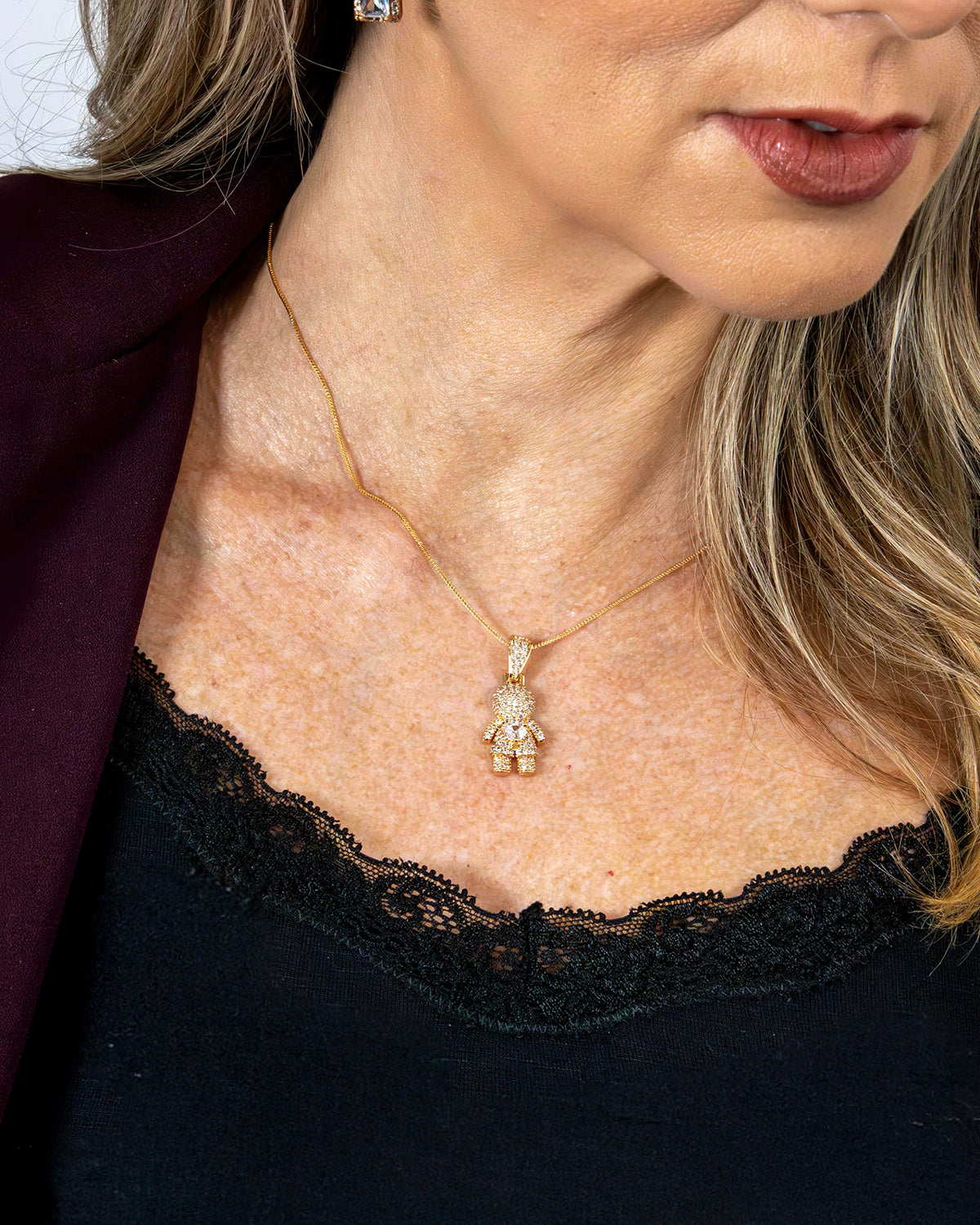 Cravejado com micro zircônias, o coração no pingente emite um brilho discreto e refinado, que ilumina o visual sem ser exagerado.