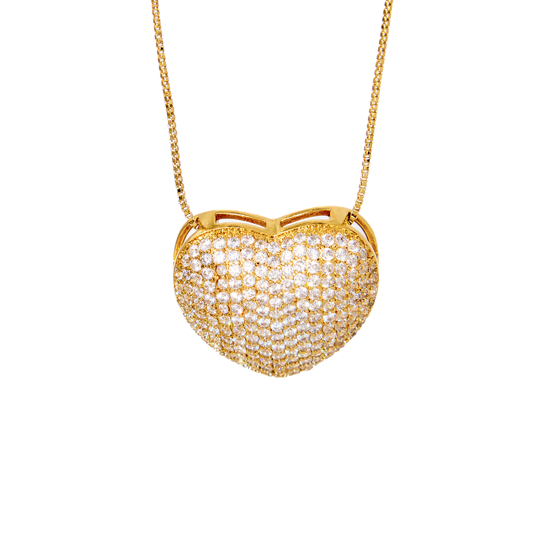 Colar Coração Delicado Cravejado Zircônia Banhado