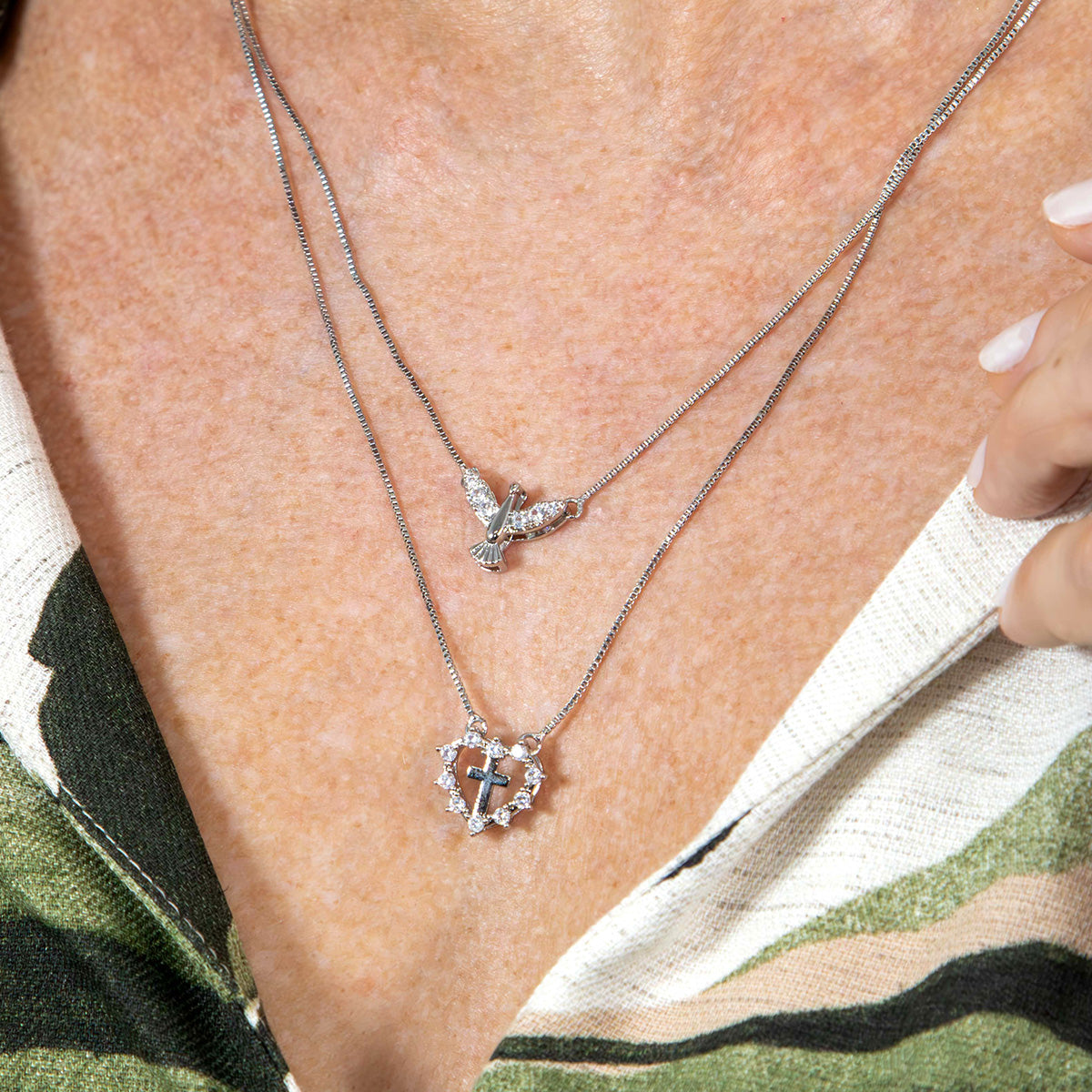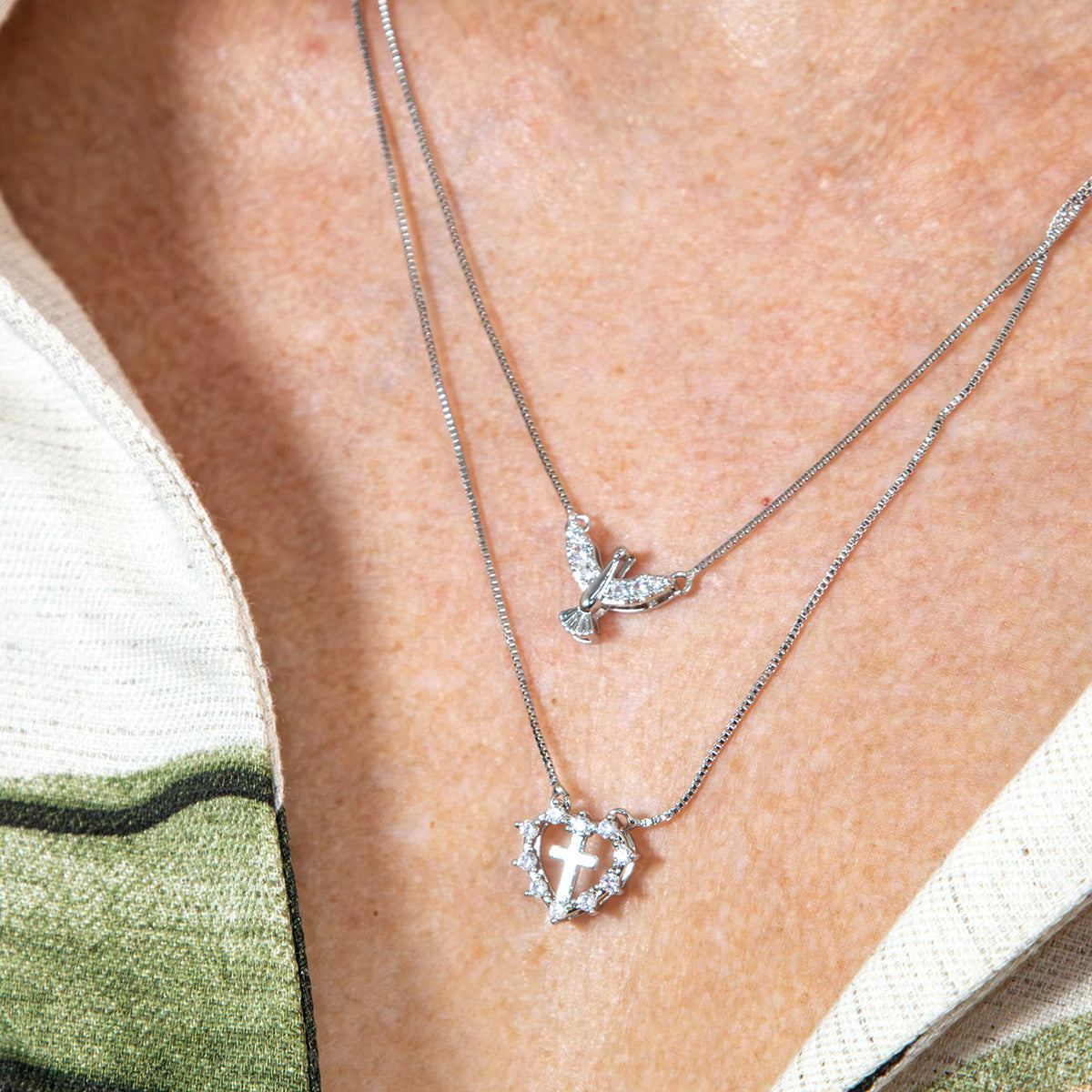 Surpreenda alguém especial com uma joia que transmite paz, amor e proteção. O Colar Duplo com Espírito Santo e Cruz é mais do que um acessório – é um símbolo de carinho e espiritualidade.