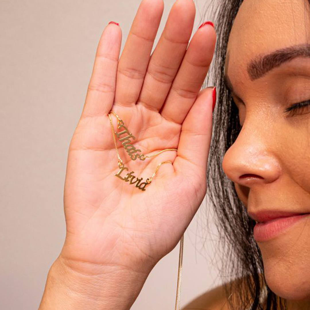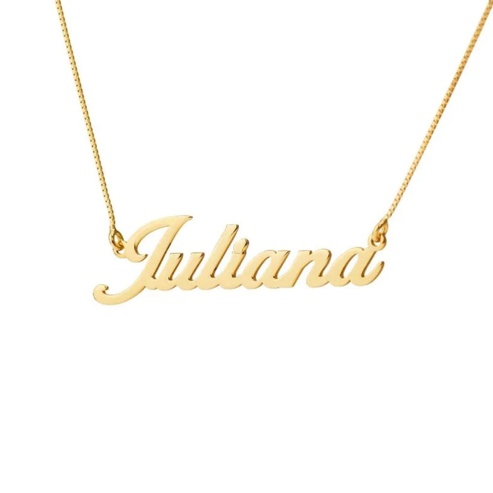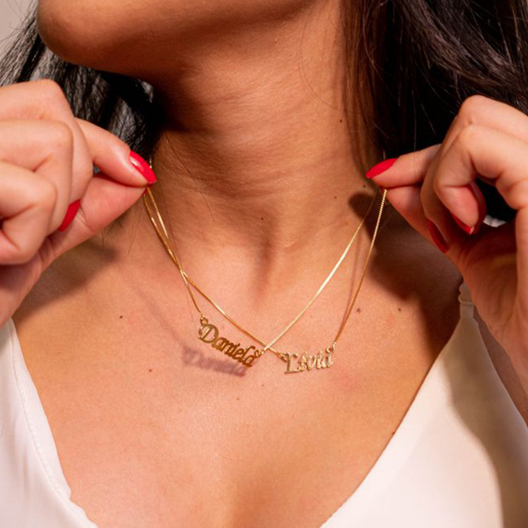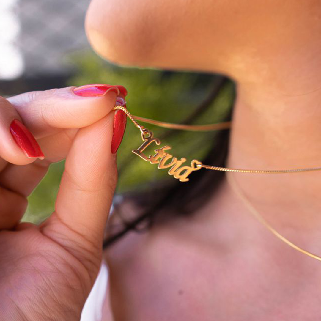 Lindo colar personalizado composto por corrente veneziana e nome representando alguém especial, deixando o acessório mais charmoso e elegante.