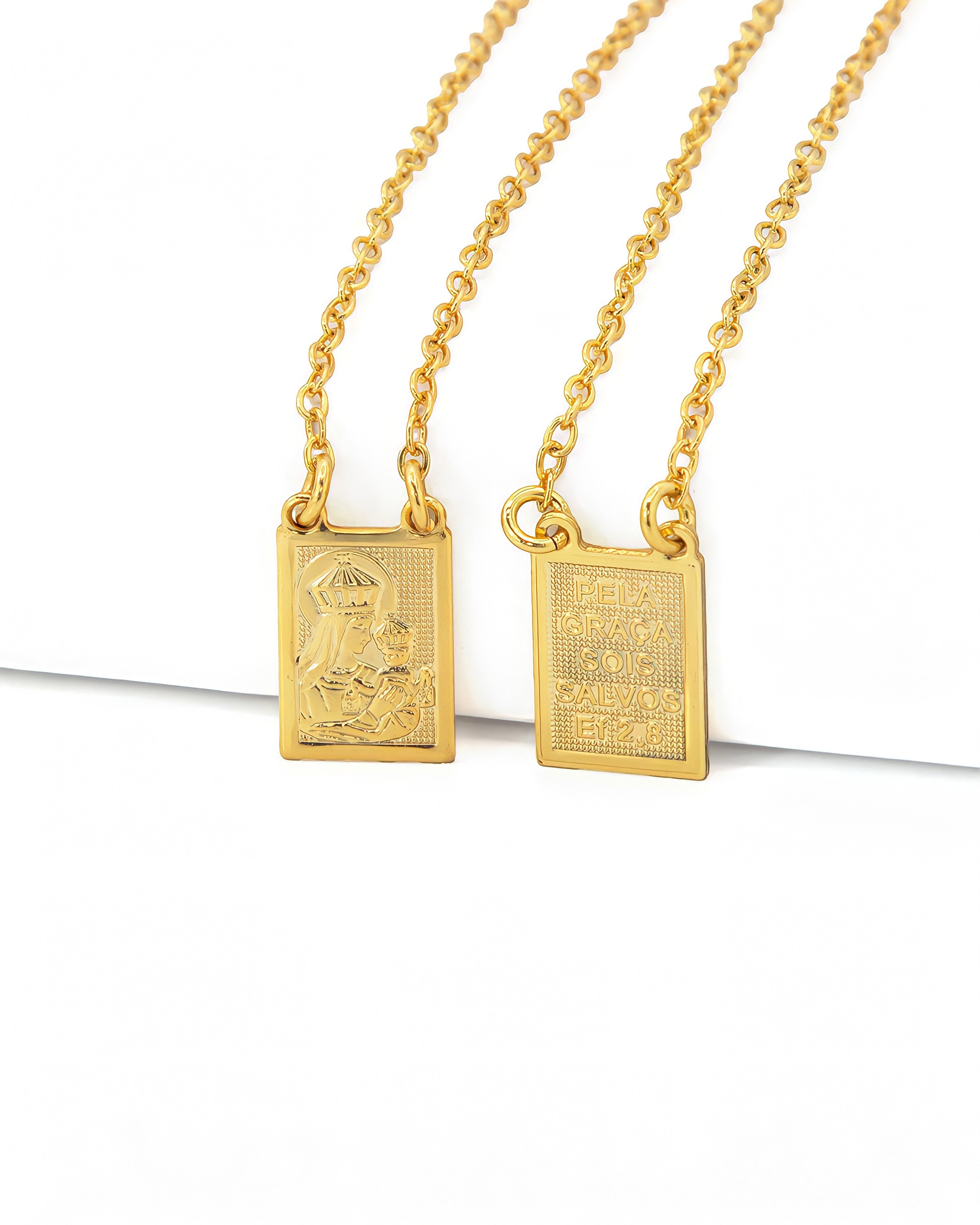 Escapulário Nossa Senhora do Carmo Pela Graça Sois Salvo em Ouro 18K