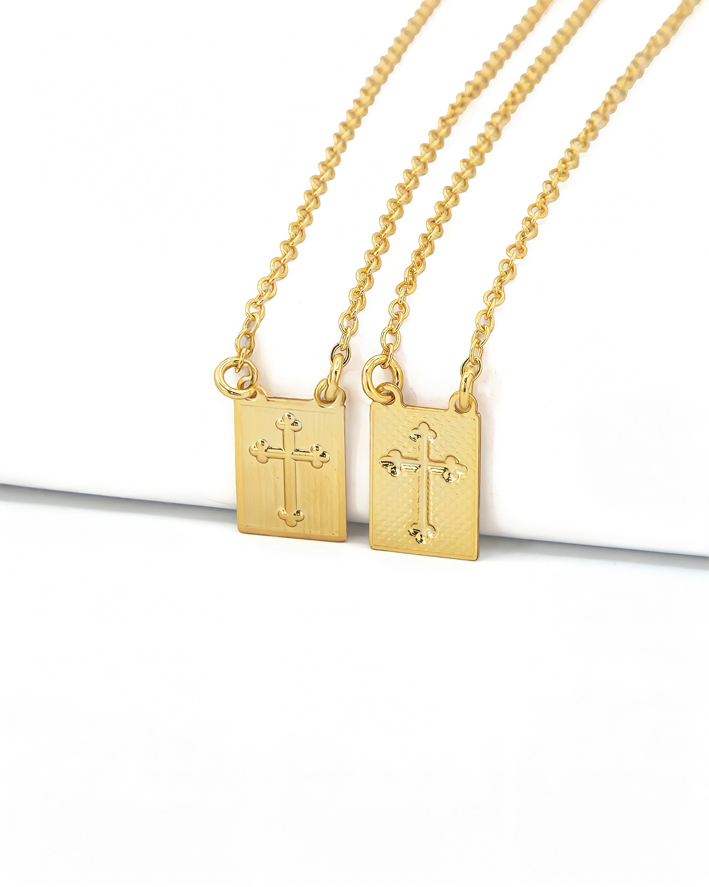 Escapulário Placa Crucifixo Banhado em Ouro 18K