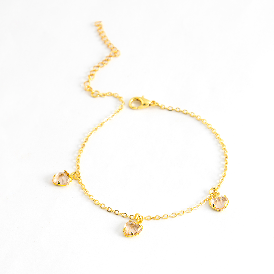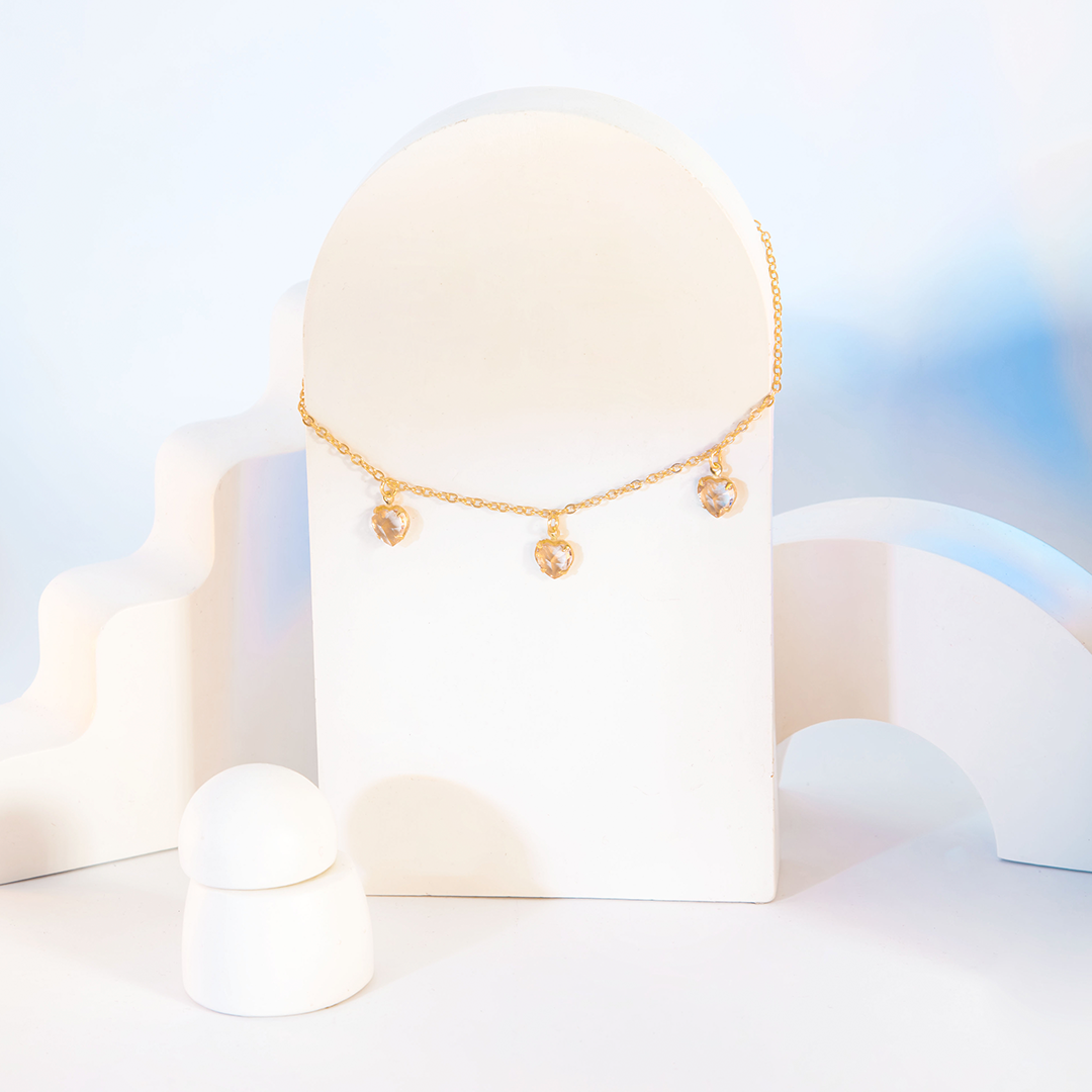 Pulseira com Pingente Coração Pedras Artificias Pedra da Lua
