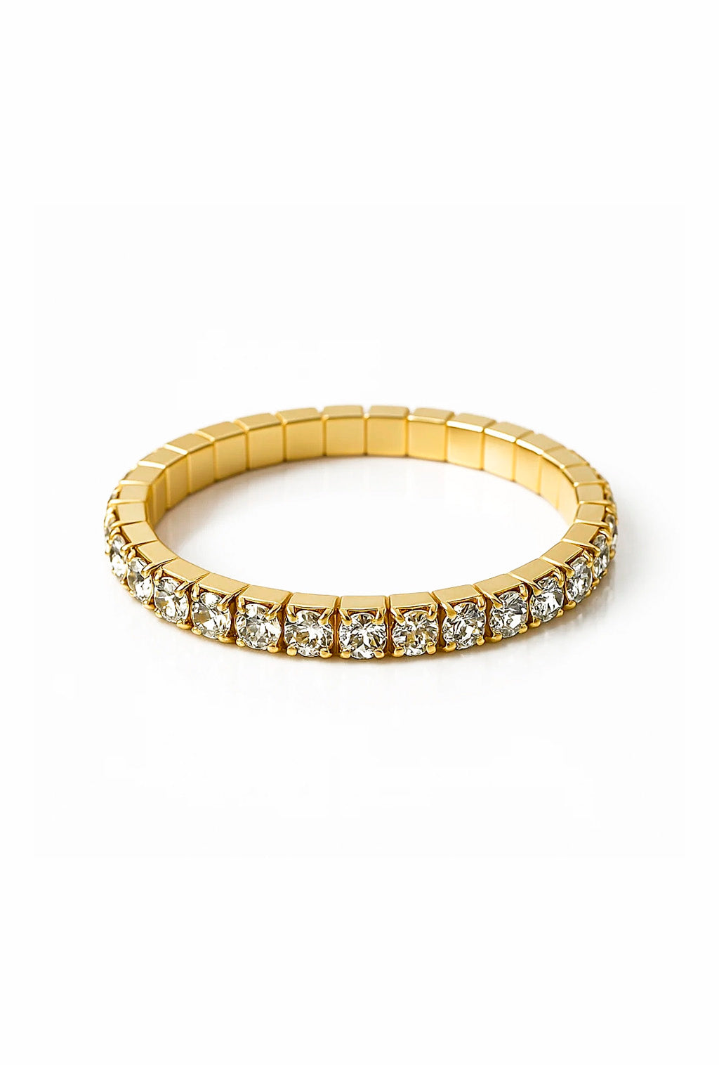 ✨A Pulseira Riviera Elástica Strass 3mm Banhada em Ouro 18K é um verdadeiro ícone de elegância.