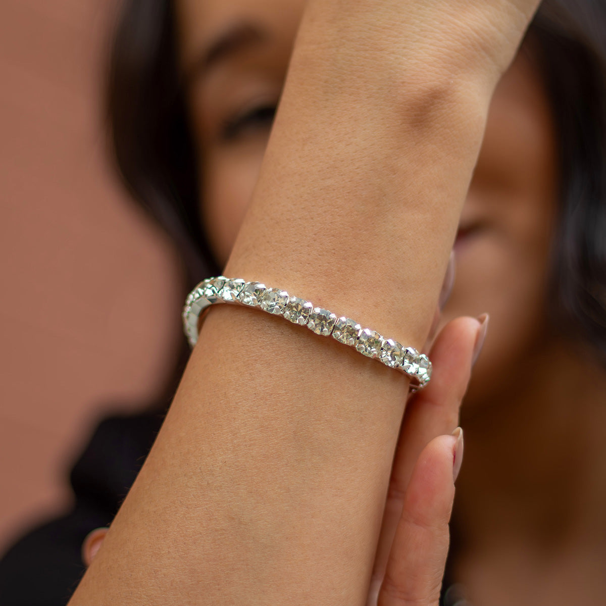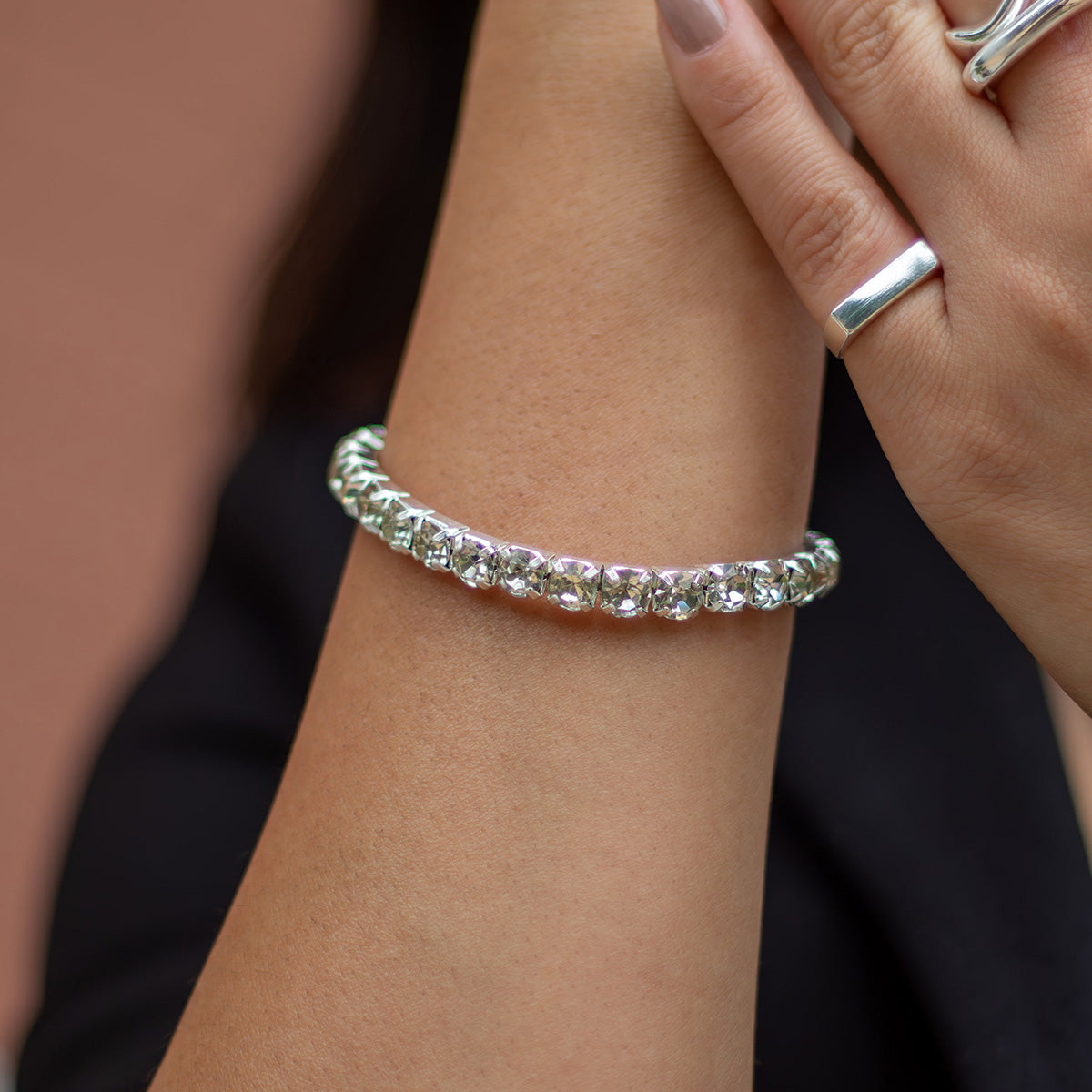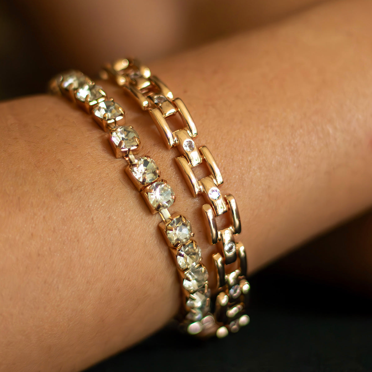 O brilho impecável do strass de 3mm adiciona um toque glamouroso e sofisticado ao seu look. Seja usada sozinha para um visual minimalista ou combinada com outras joias para um mix poderoso, essa pulseira é sinônimo de sofisticação.