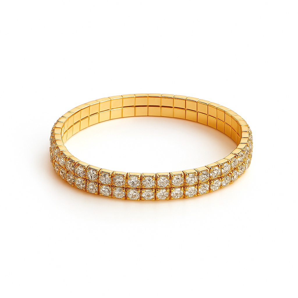 Pulseira Riviera Com Ajuste de Elástico Duas Fileiras Banhado em Ouro 18K